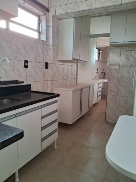 Apartamento com 02 dormitórios com armários com 3º reversível, sala, cozinha com armários, 02 banheiros, área de serviço e 01 vaga de garagem.